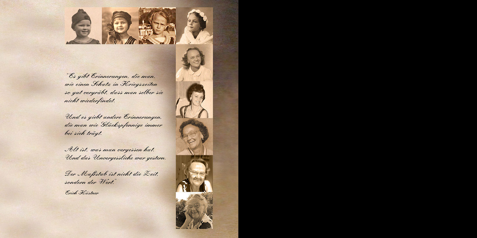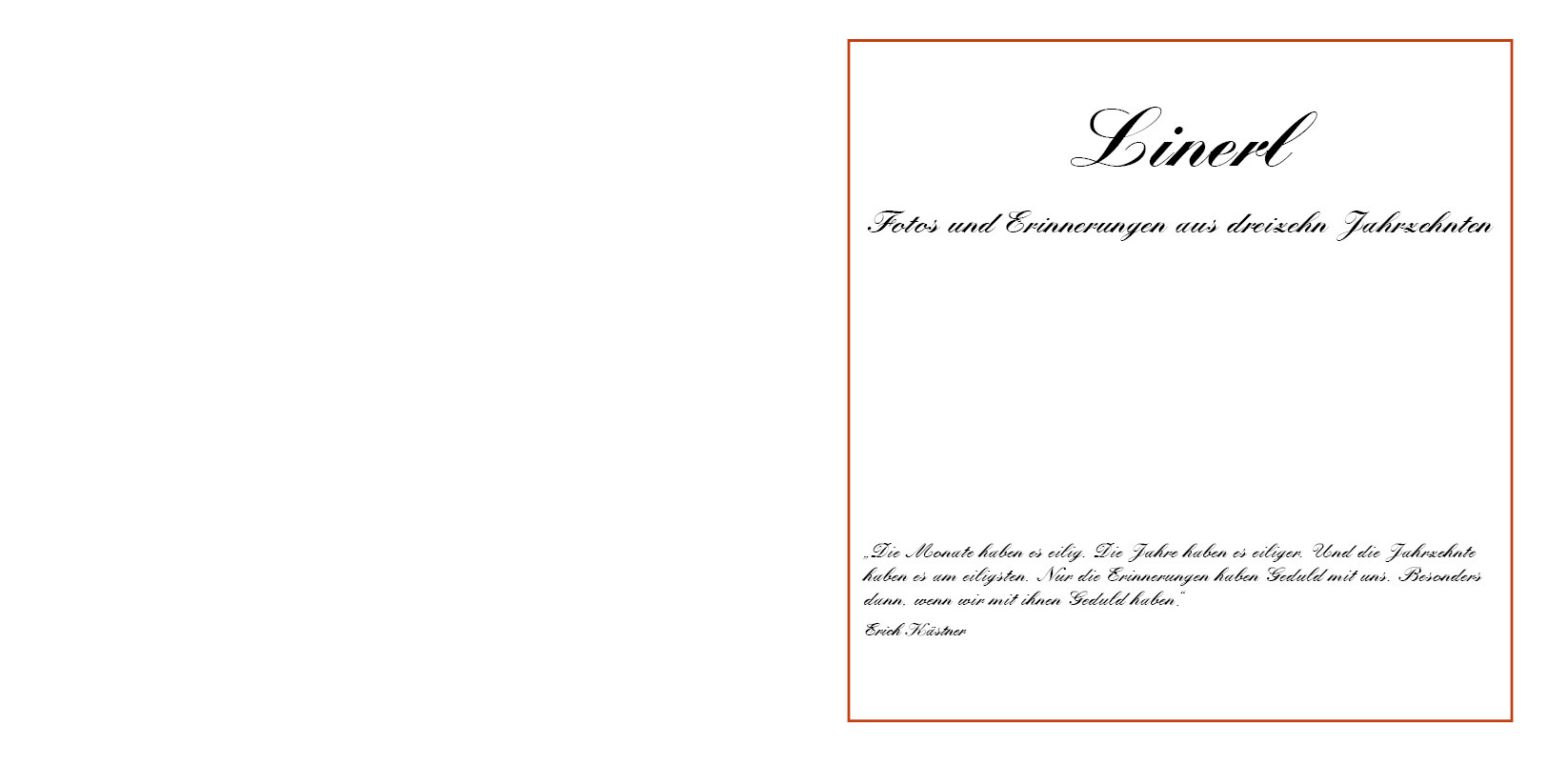 Diese Gedanken von Erich Kästner habe ich in der Buchproduktion Fotobuch Linerl zu Grunde gelegt. Die Erinnerung an diese Jahre soll dadurch für mich und alle die meine Mutter kennen lebendig bleiben.