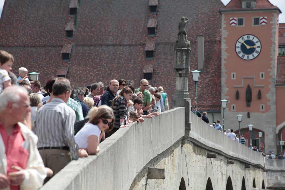 Die Stadt liegt am nördlichsten Punkt der Donau. Diese außergewöhnliche Lage am Scheitelpunkt des mächtigsten Stroms Europas zog seit grauer Vorzeit Menschen an. Und zum Schmelztiegel aus Keltischem und Römischen, Germanischen und Levantinischem. Mephistopheles erklärt dem Doktor Faust mit dem er mit seinem Zaubermantel über die deutschen Lande fliegt: „Diese Stadt hat sieben Namen. Regensburg, Tyberia, Qudrata, Hyaspolis, Reginopolis, Imbripolis und Ratispona“.